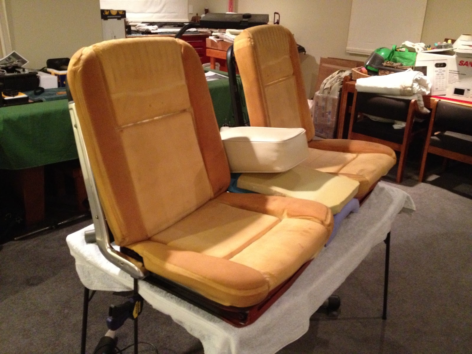 Here I have glued the original foam rubber covers onto the new plywood frame.